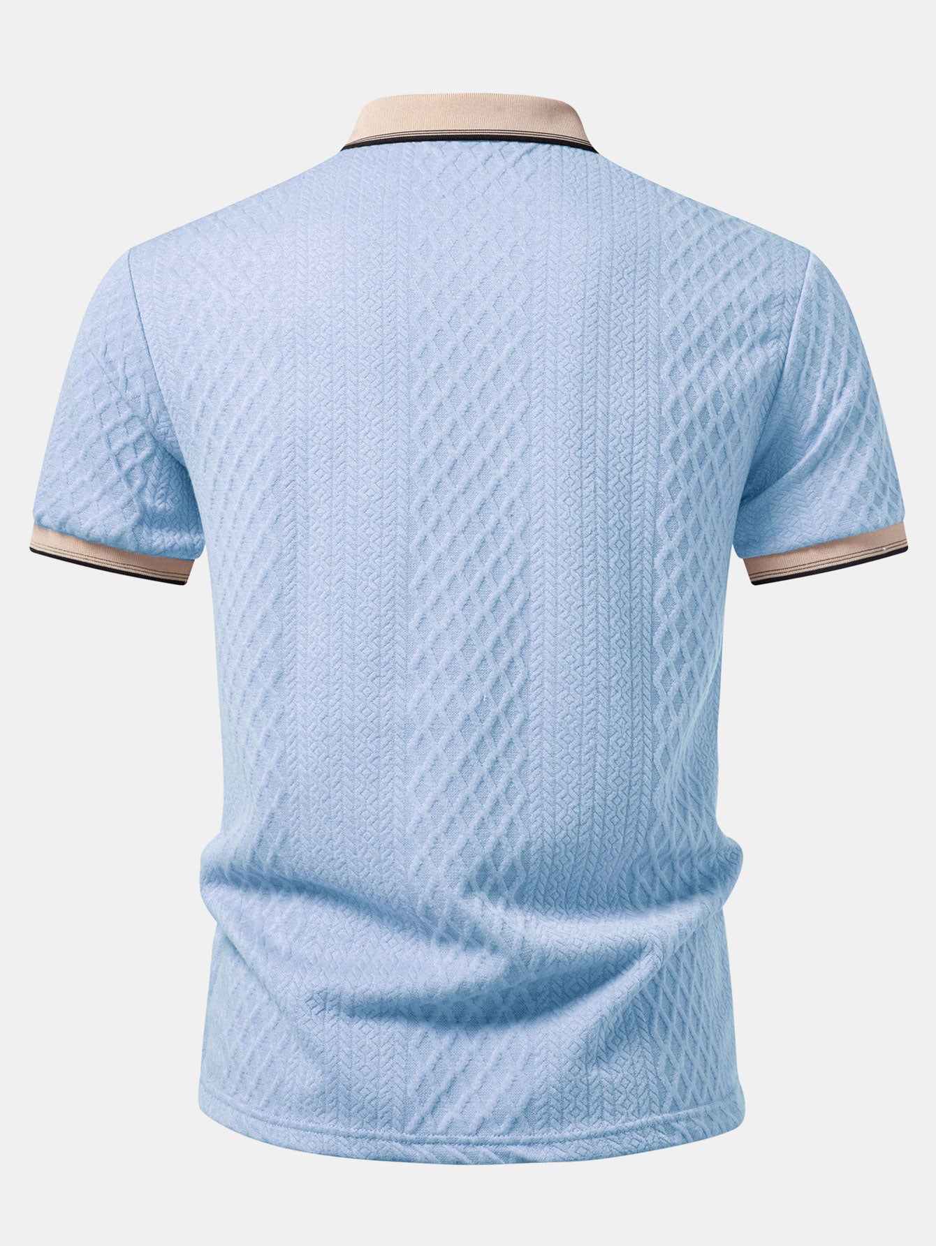 Add a modern edge to your wardrobe with this geometry jacquard polo, featuring a refined geometric pattern that brings texture and visual interest to a classic silhouette. Designed with a clean finish and crafted from soft, breathable fabric, this polo offers both comfort and style for everyday wear.
